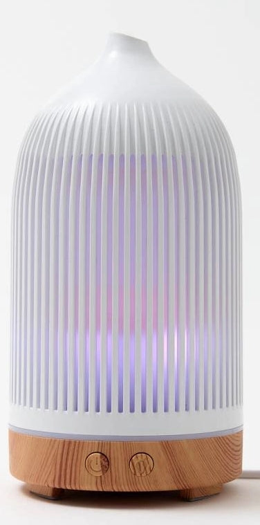 Electric Plastic White with Wood Effect Ribbed Aroma Diffuser