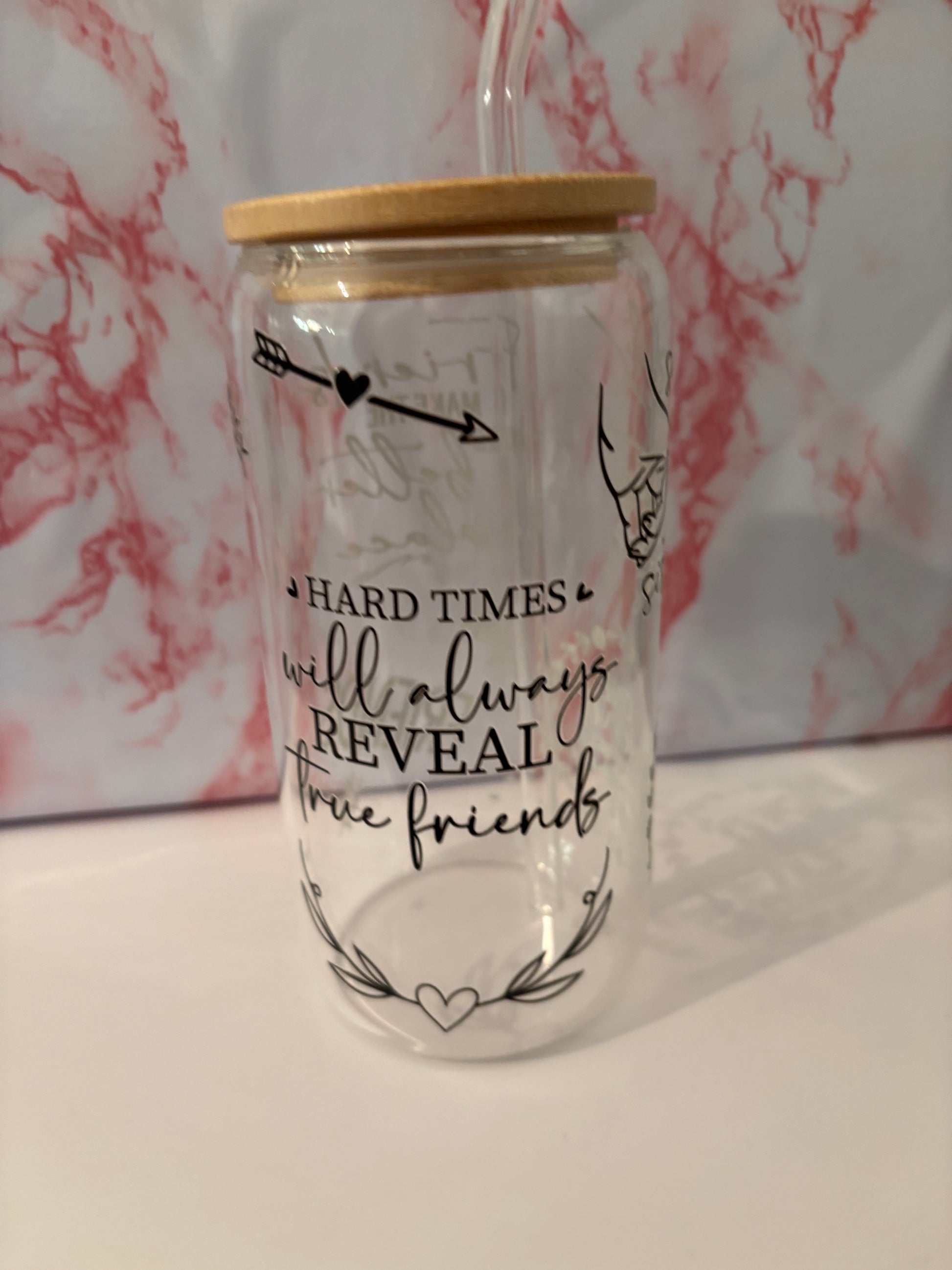 Celebrate the people who make life brighter with our Glass Tumbler with Friendship Decal. Featuring uplifting designs like “Soul Sisters” and “One Friend Can Change Your Whole Life,” this tumbler is a perfect gift for best friends, sisters, or anyone who deserves a little appreciation.