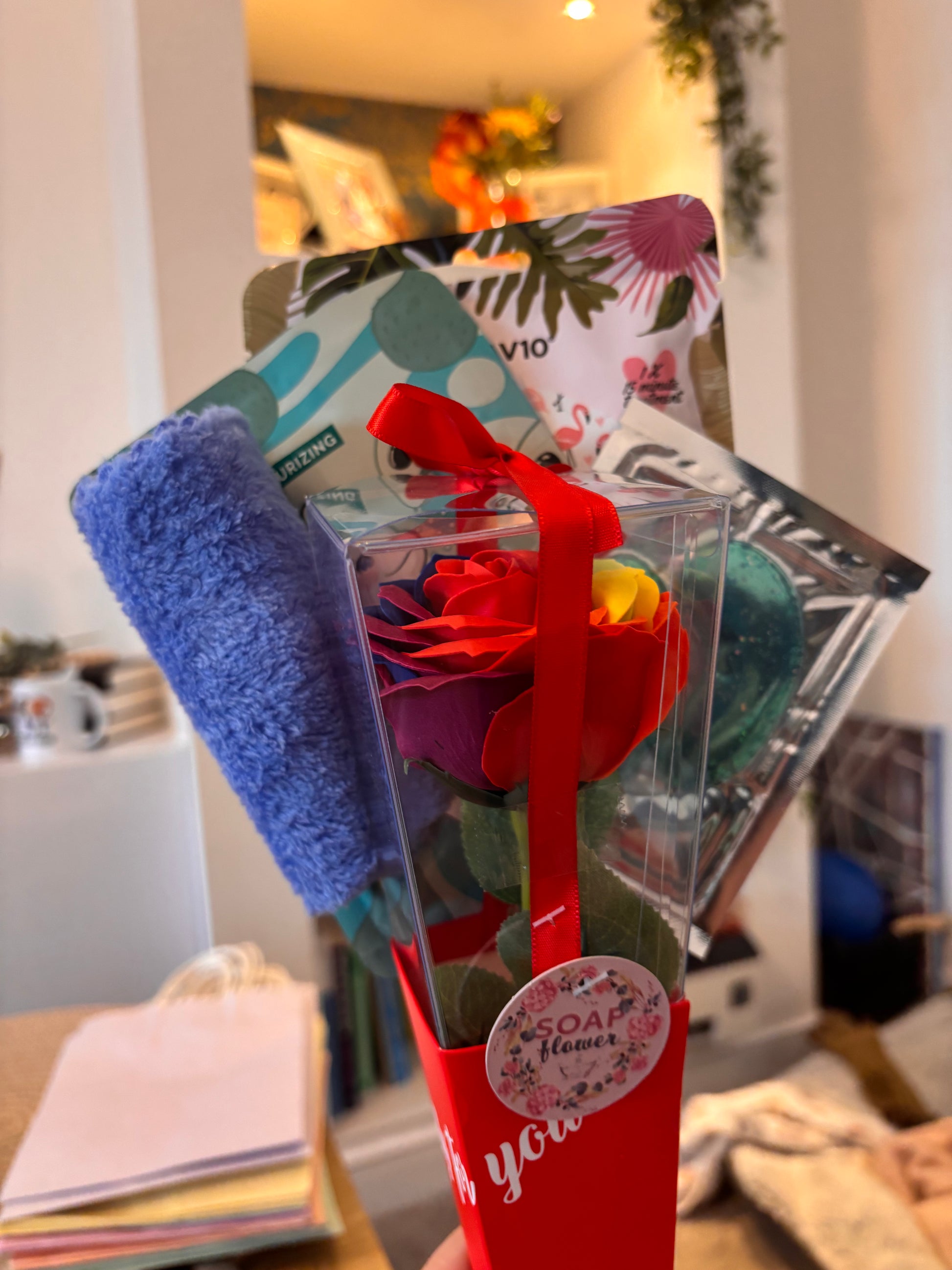 Bring colour, care, and calm into your day with our Rainbow Rose Spa Pamper Set. This gift-ready bundle features a stunning rainbow soap flower presented in a keepsake box, paired with a mix of self-care essentials for the ultimate at-home spa moment.