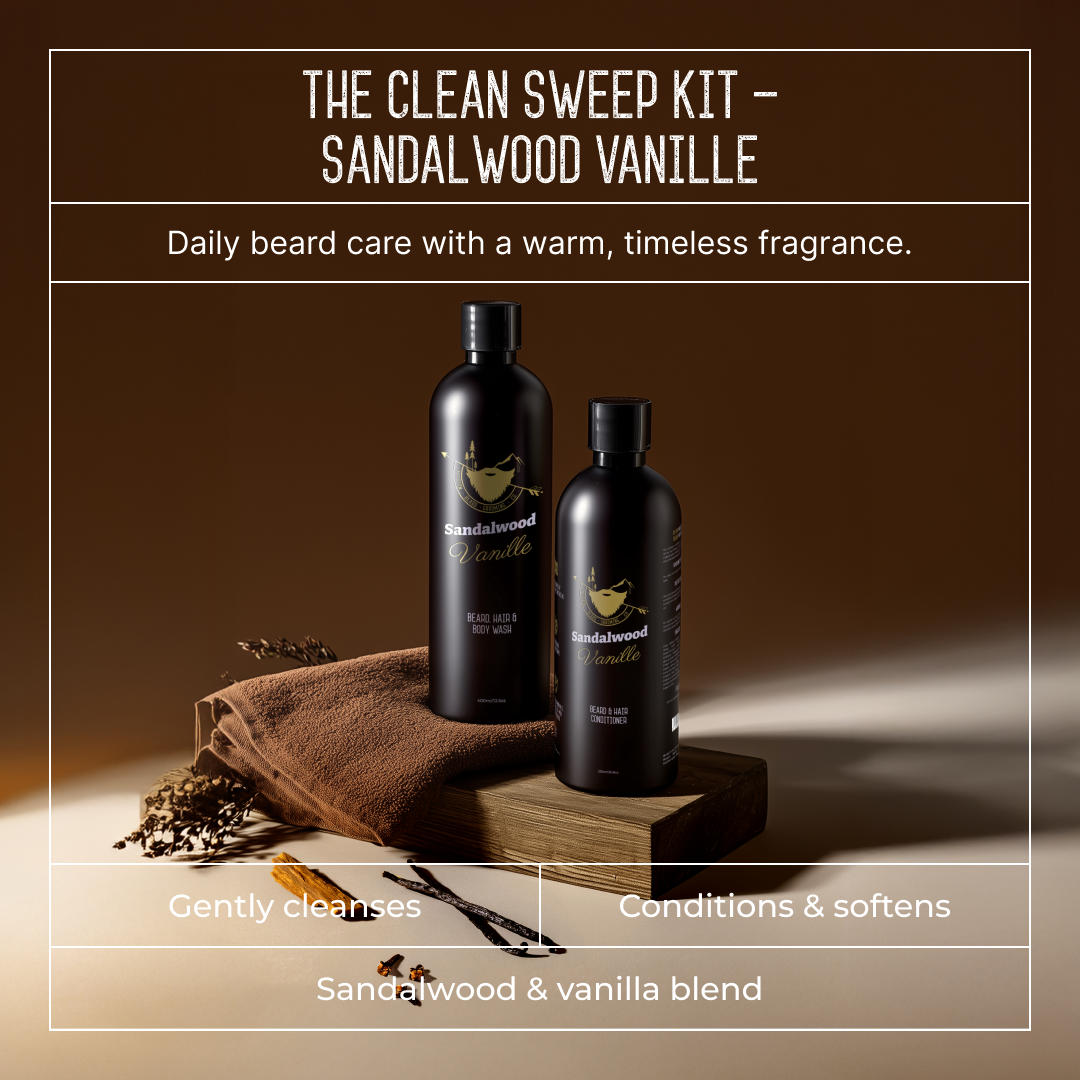 Flakes? Gone. Itch? History. The Clean Sweep Kit is built to deep clean and condition your beard without drying it out. With our premium Beard Shampoo and Conditioner, you’ll get that fresh, soft, all-day feel that sets your beard apart.